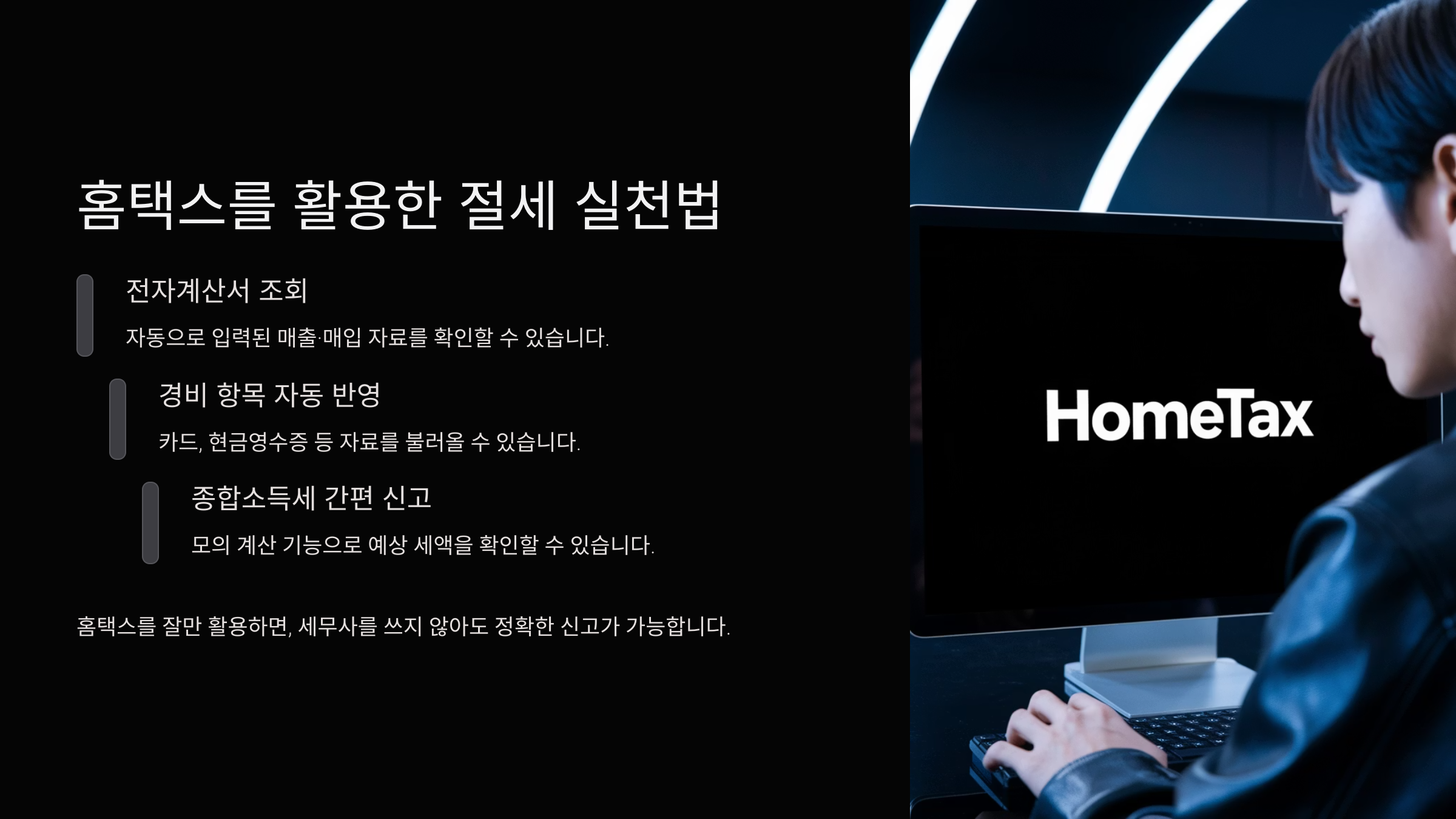 홈택스를 잘만 활용하면, 세무사를 쓰지 않아도 정확한 신고가 가능하다는 걸 알게 될 거예요.